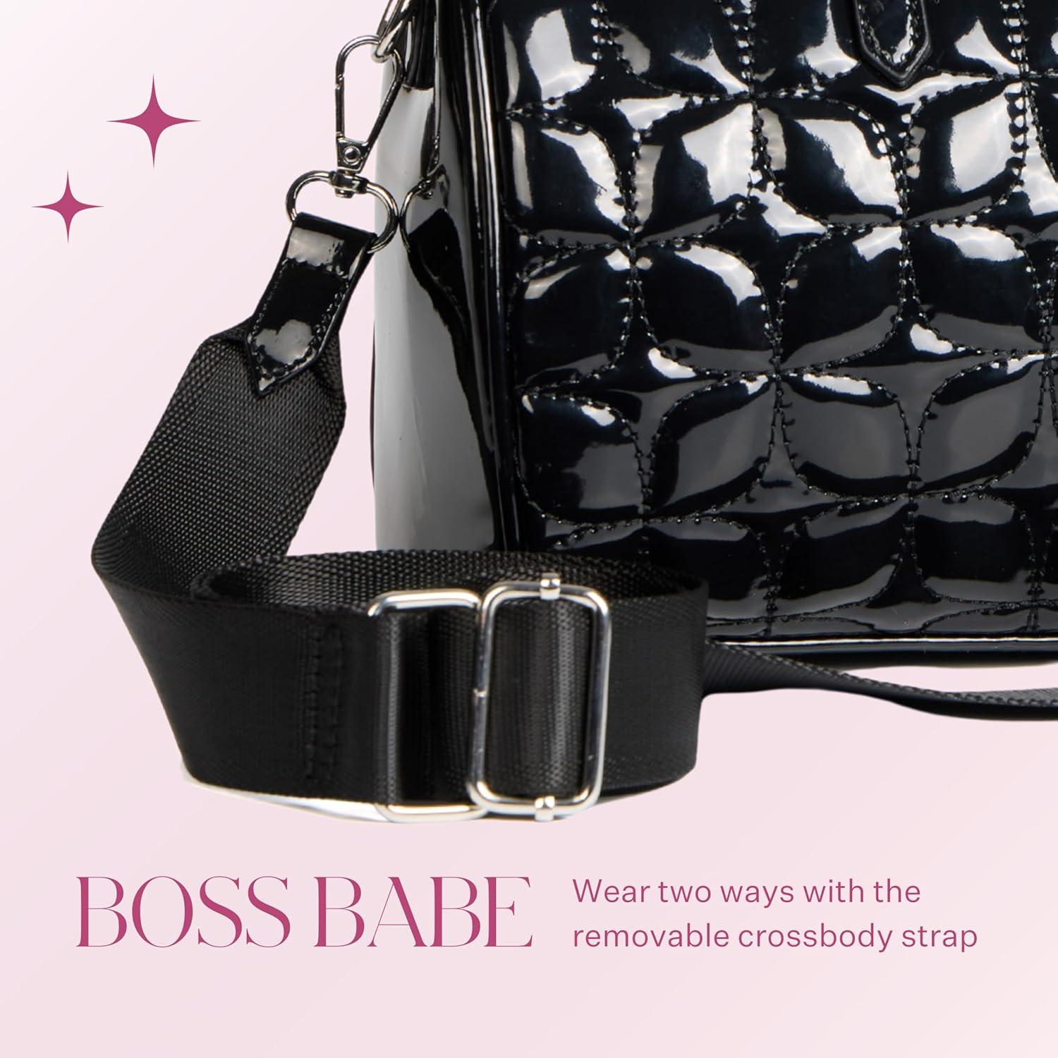 Paris Hilton Mini Varsity Bowler Satchel Hand Bag Purse with Removable Strap Vegan Leather(Mini Black Bowler)