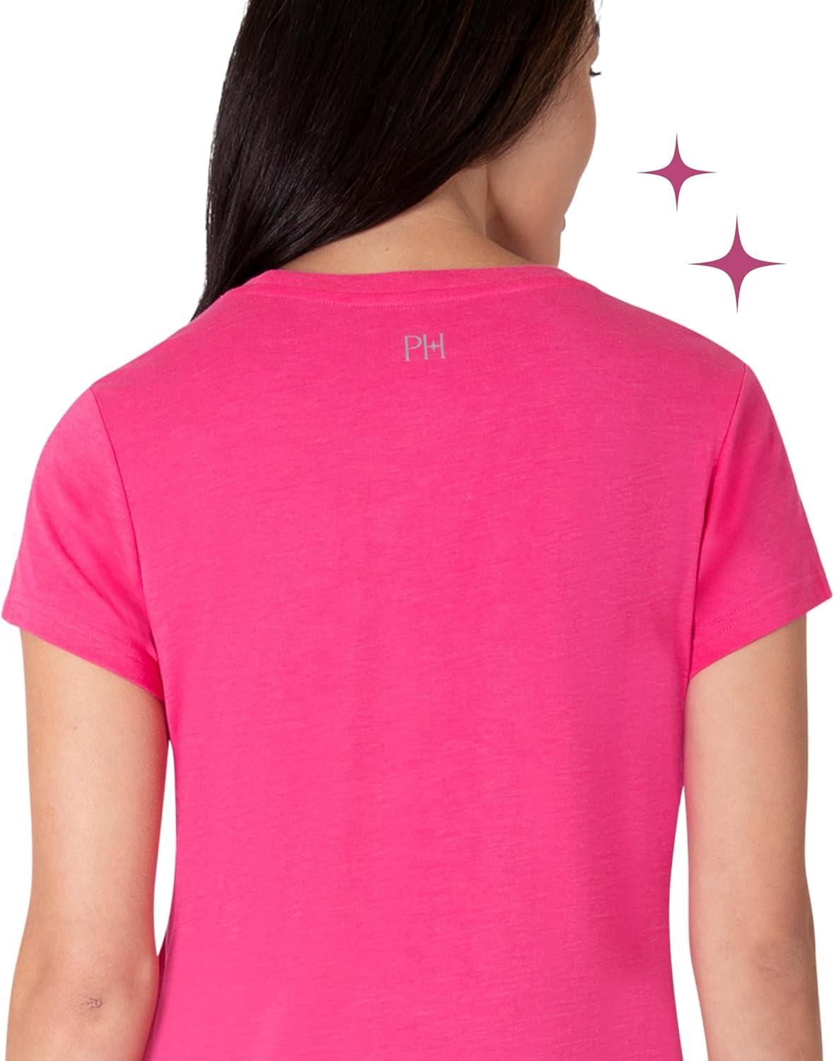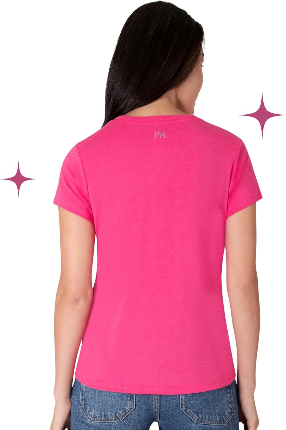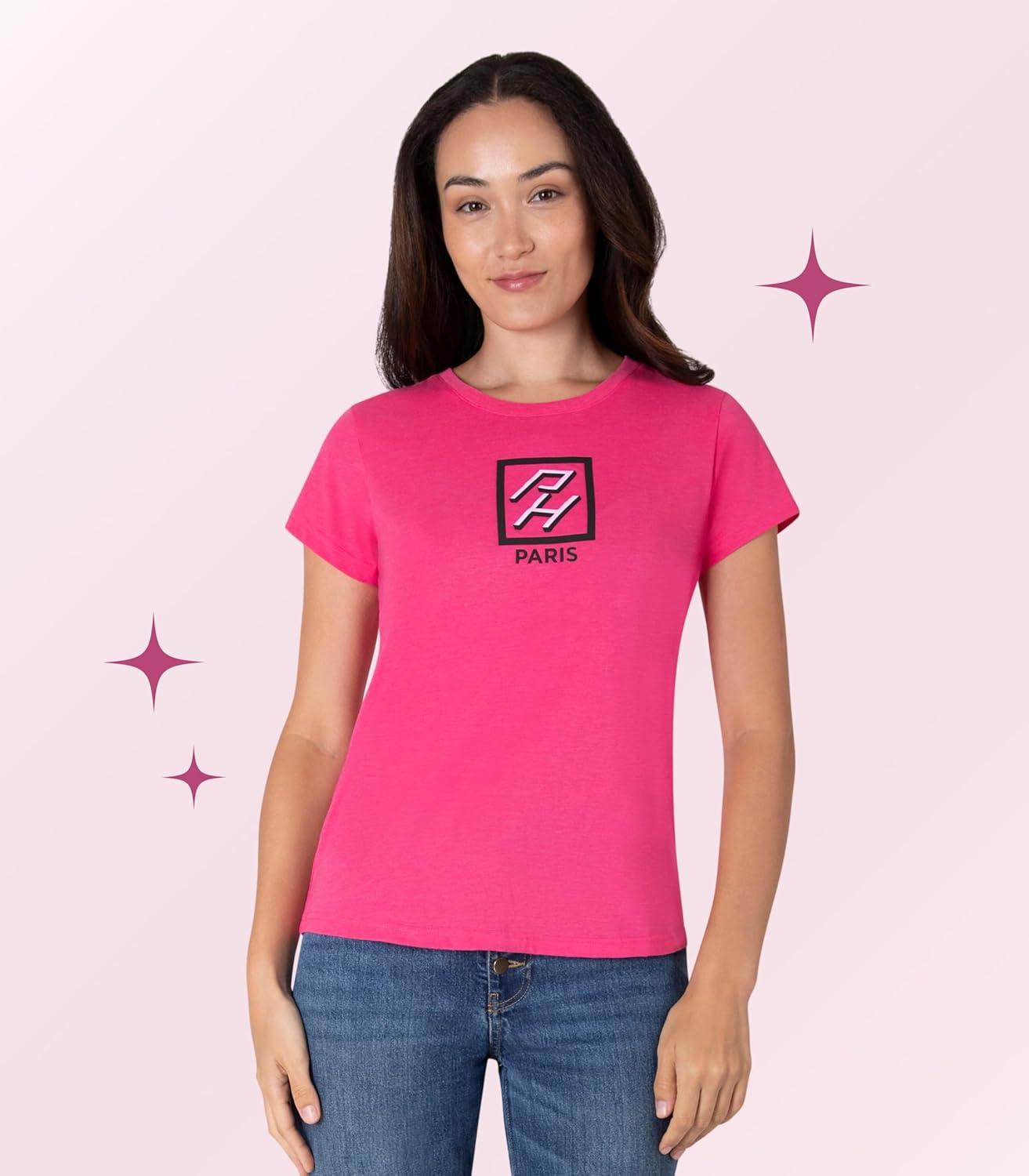 Paris Hilton Women’s Fashion T-Shirt Embellished Graphics Short Sleeve Crew Neck Tops(Hot Pink Ph)