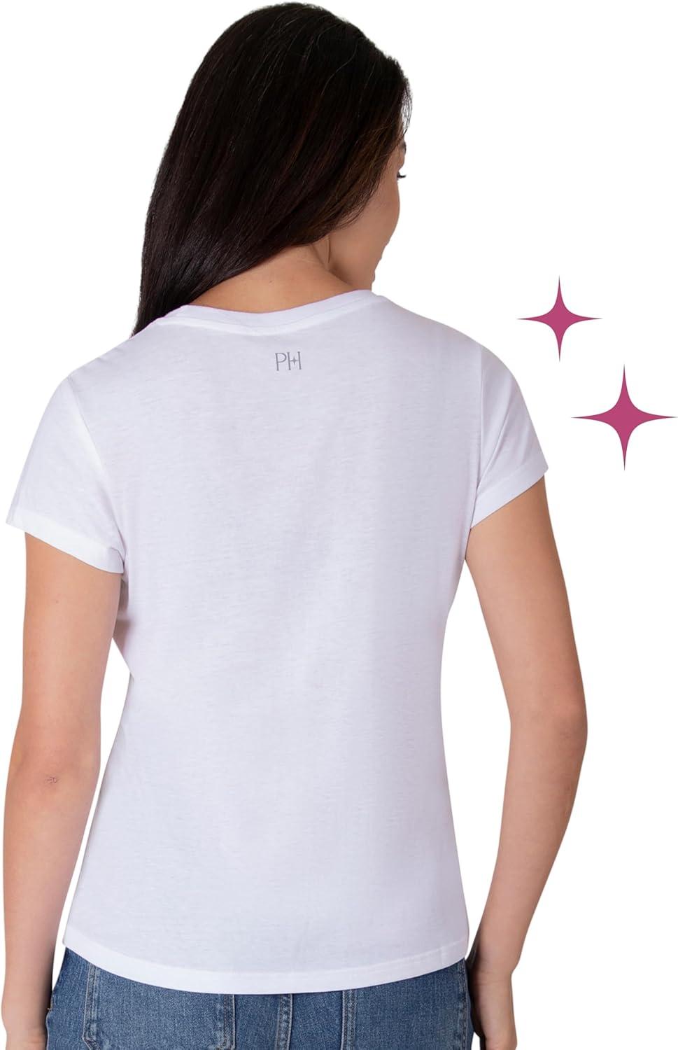 Paris Hilton Women’s Fashion T-Shirt Embellished Graphics Short Sleeve Crew Neck Tops(White Ph)