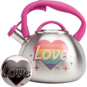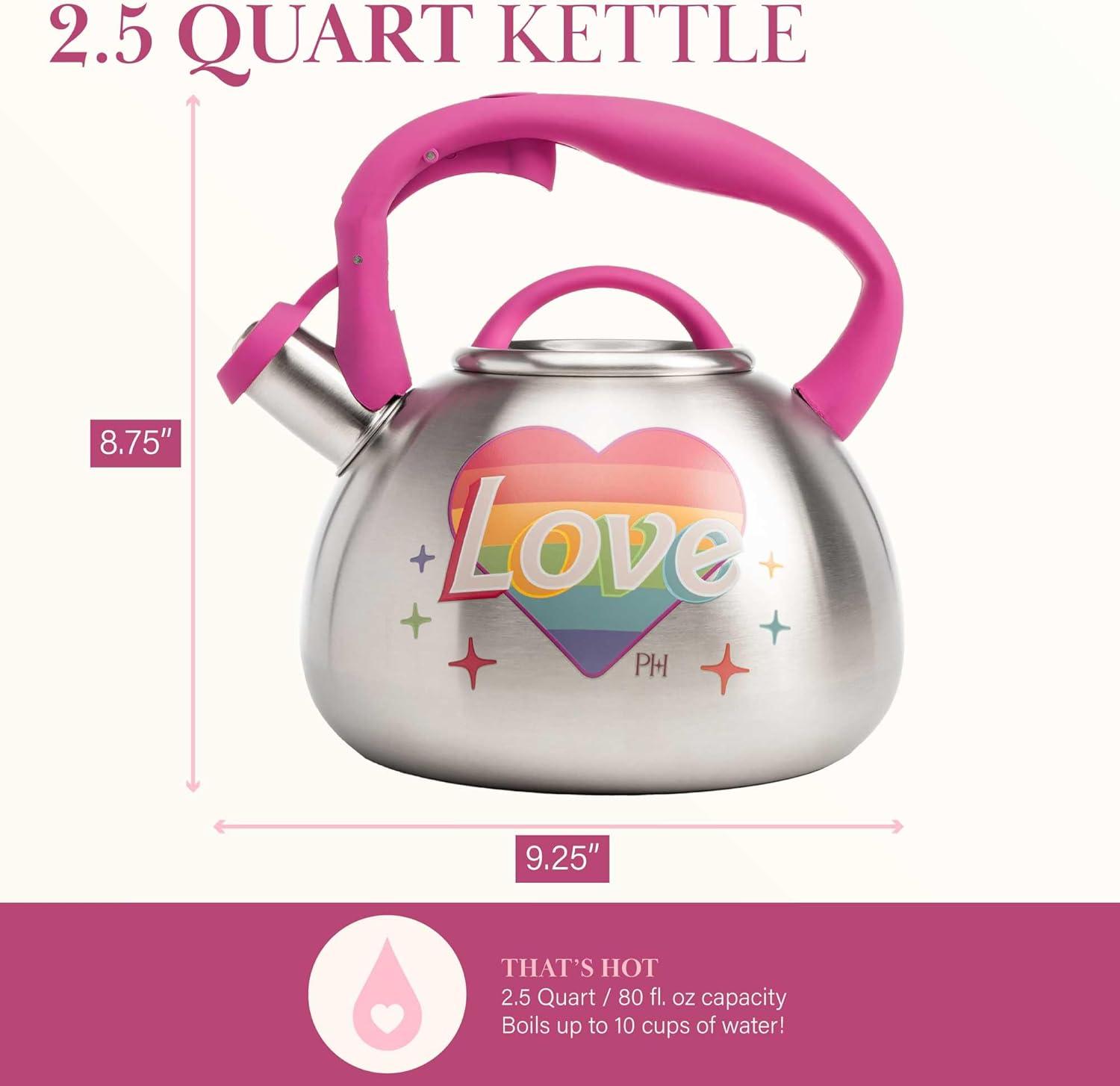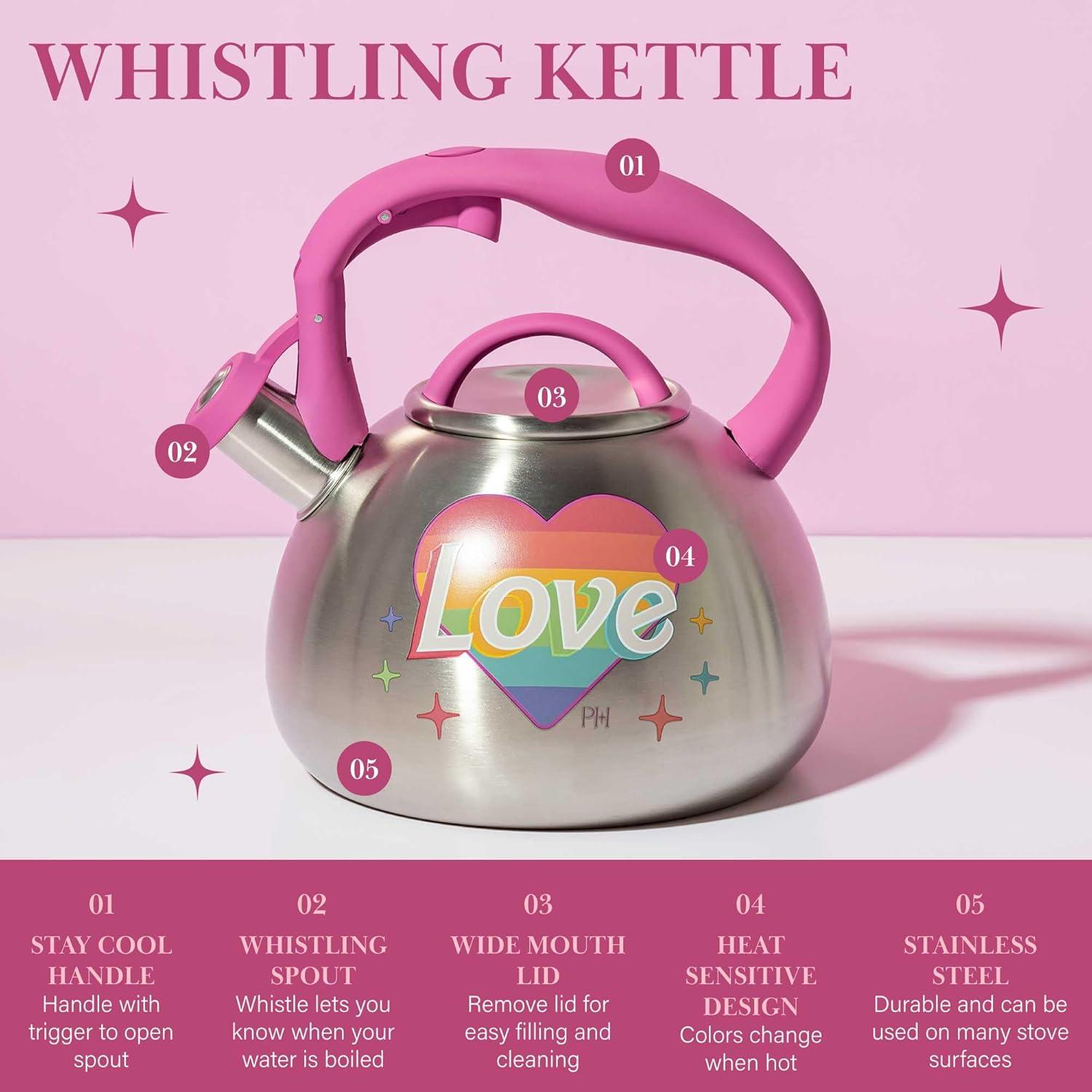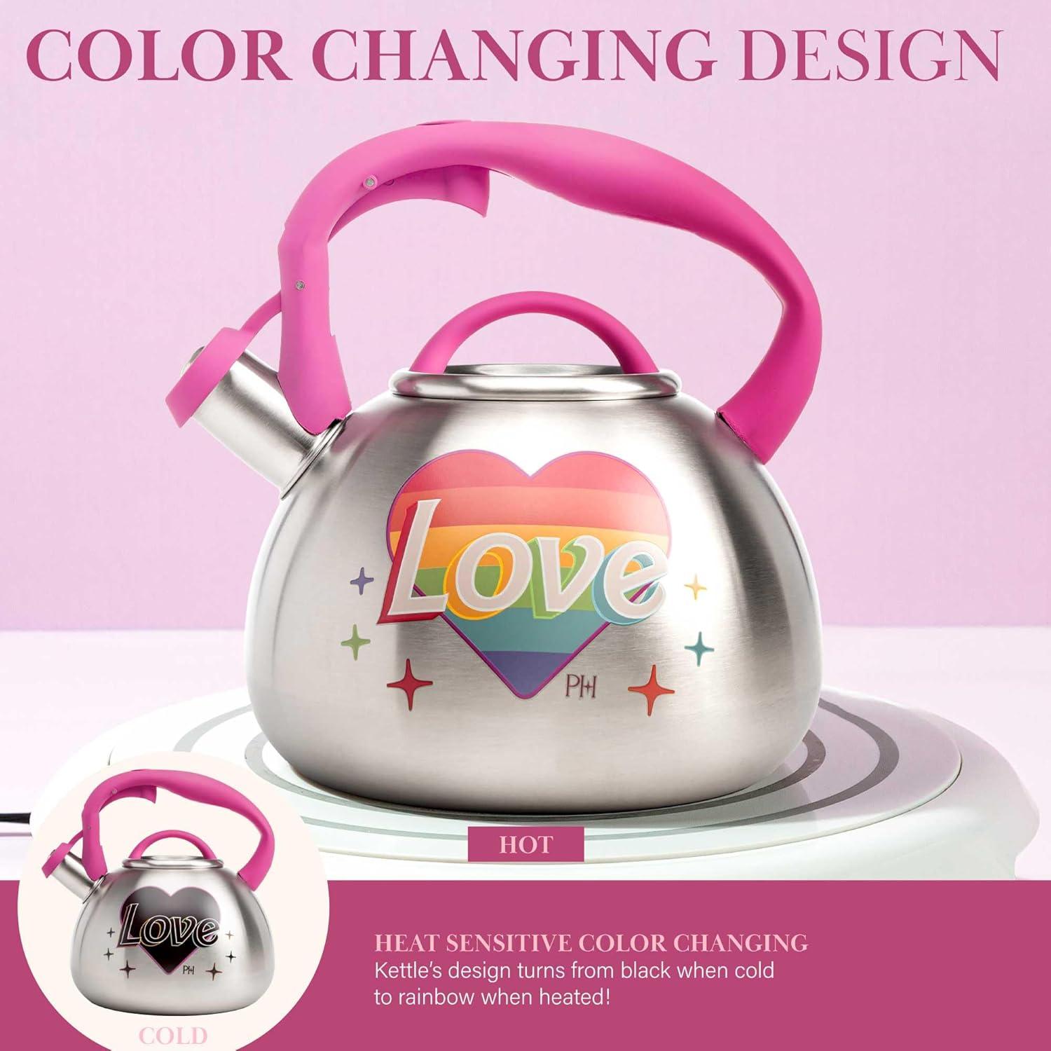 Paris Hilton Whistling Stovetop Tea Kettle, Stainless Steel with Rainbow Love Color Changing Heat Indicator Design, Soft Touch Handle, 2.5-Quart, Love Rainbow(Love Rainbow)