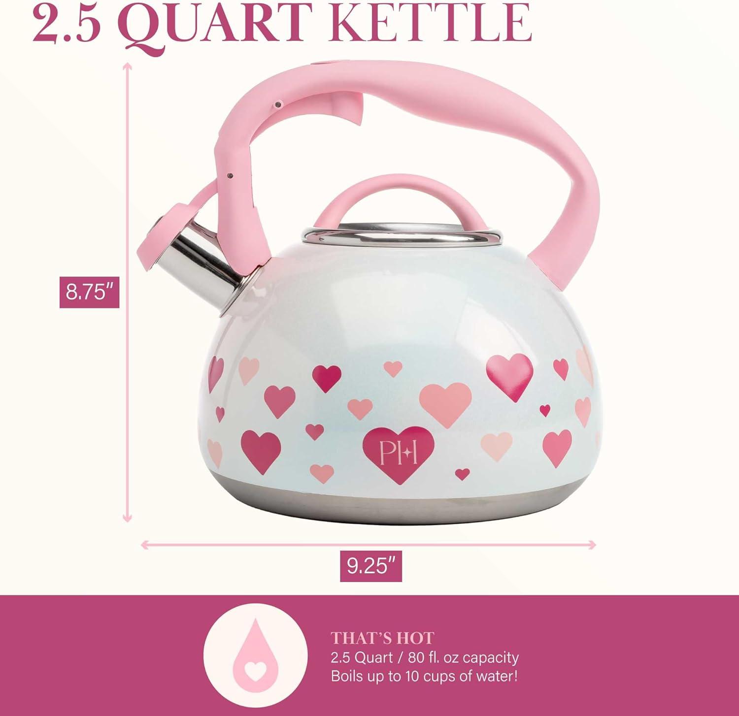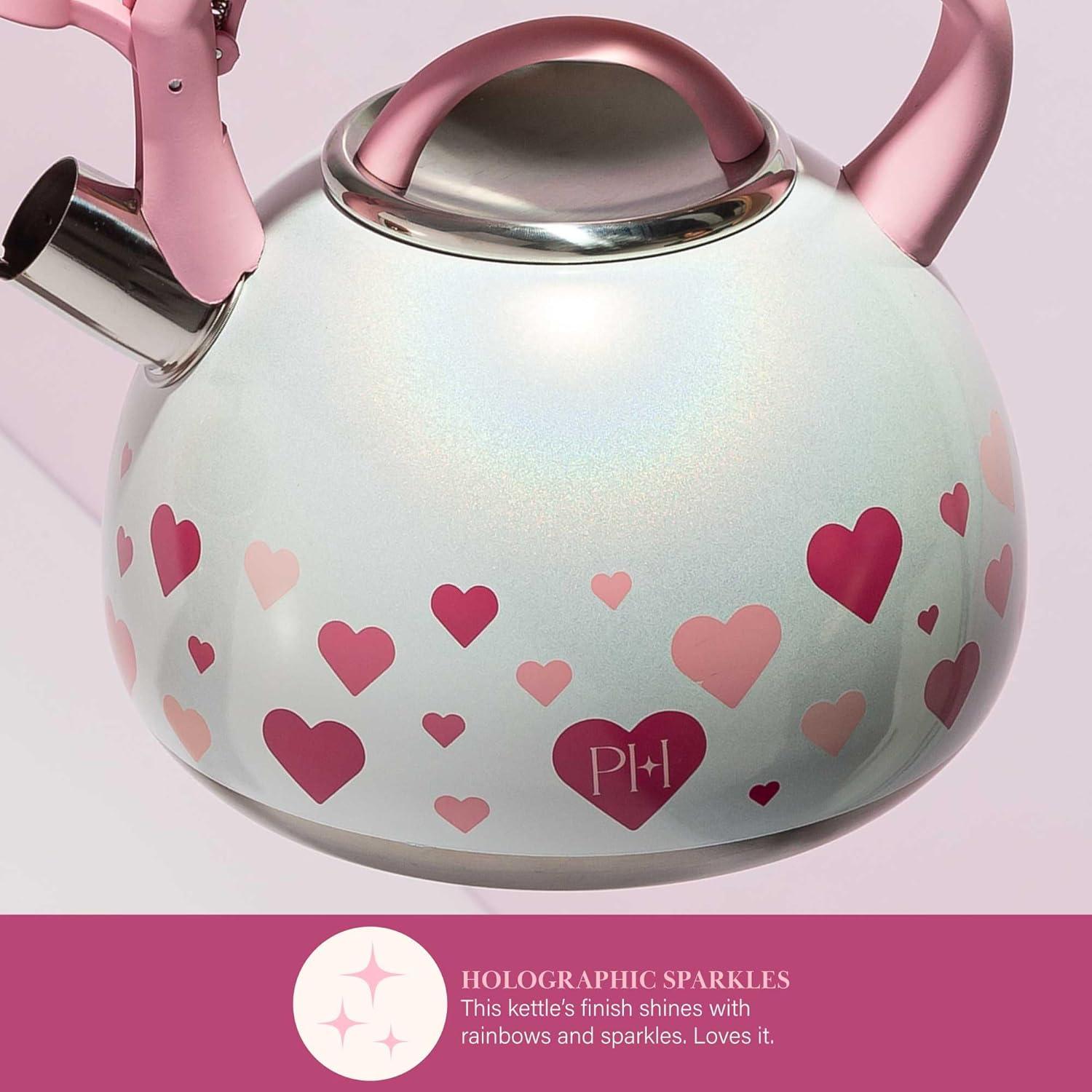 Paris Hilton Whistling Stovetop Tea Kettle, Stainless Steel with Rainbow Love Color Changing Heat Indicator Design, Soft Touch Handle, 2.5-Quart, Love Rainbow(Iridescent Hearts)