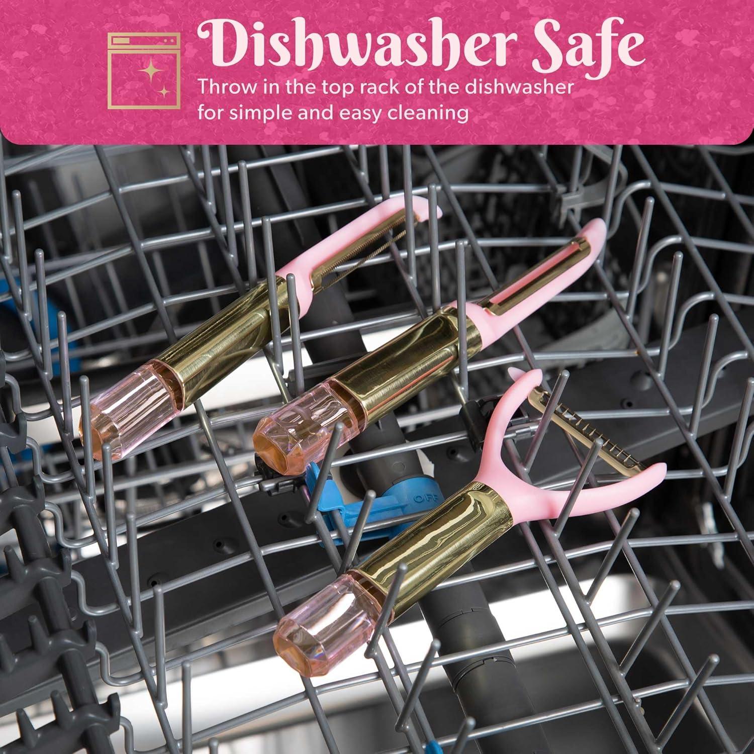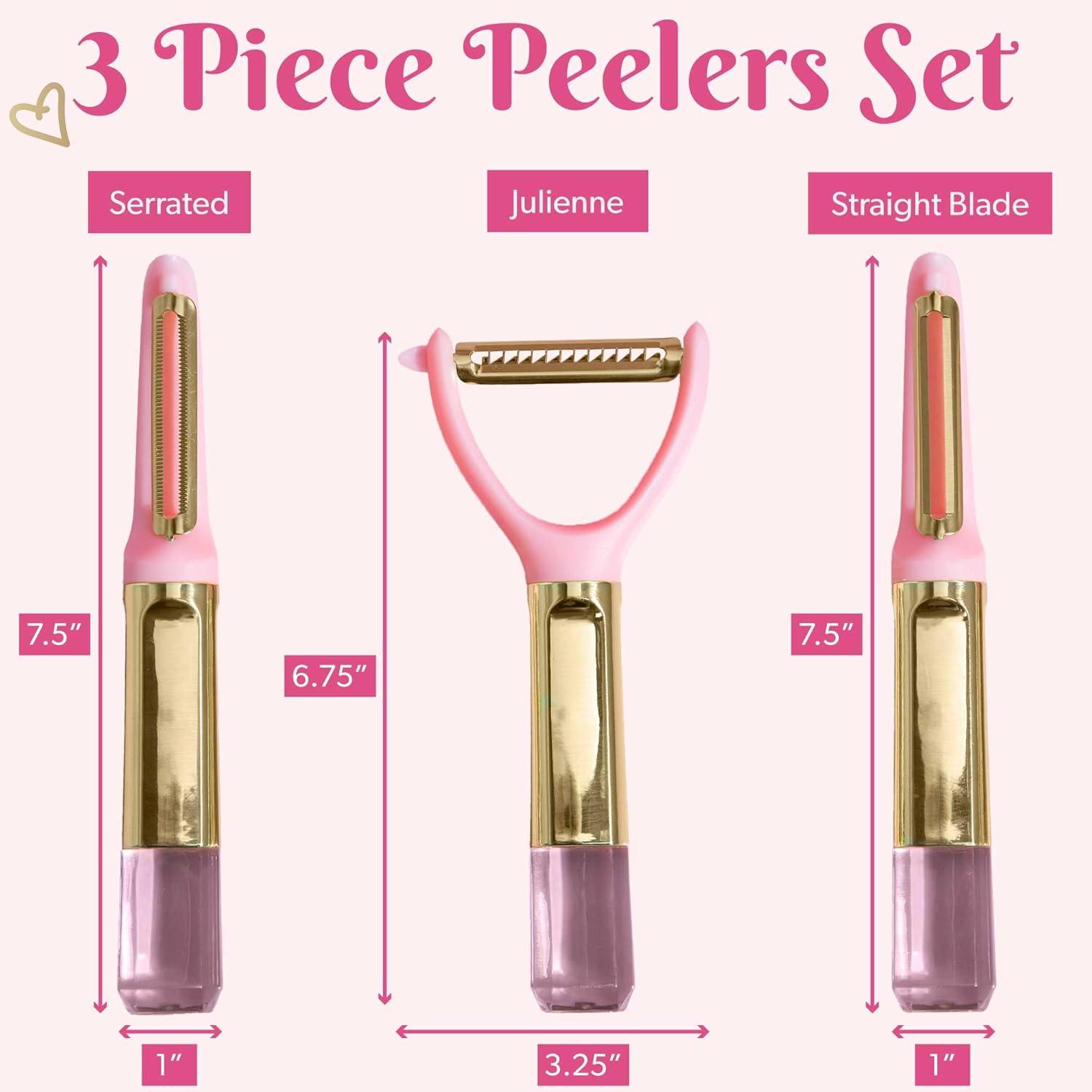 Paris Hilton 3 Piece Peeler Set with Pink Jewel Shaped Handle, Dishwasher Safe Kitchen Tools and Utensil, Pink and Gold(Pink)
