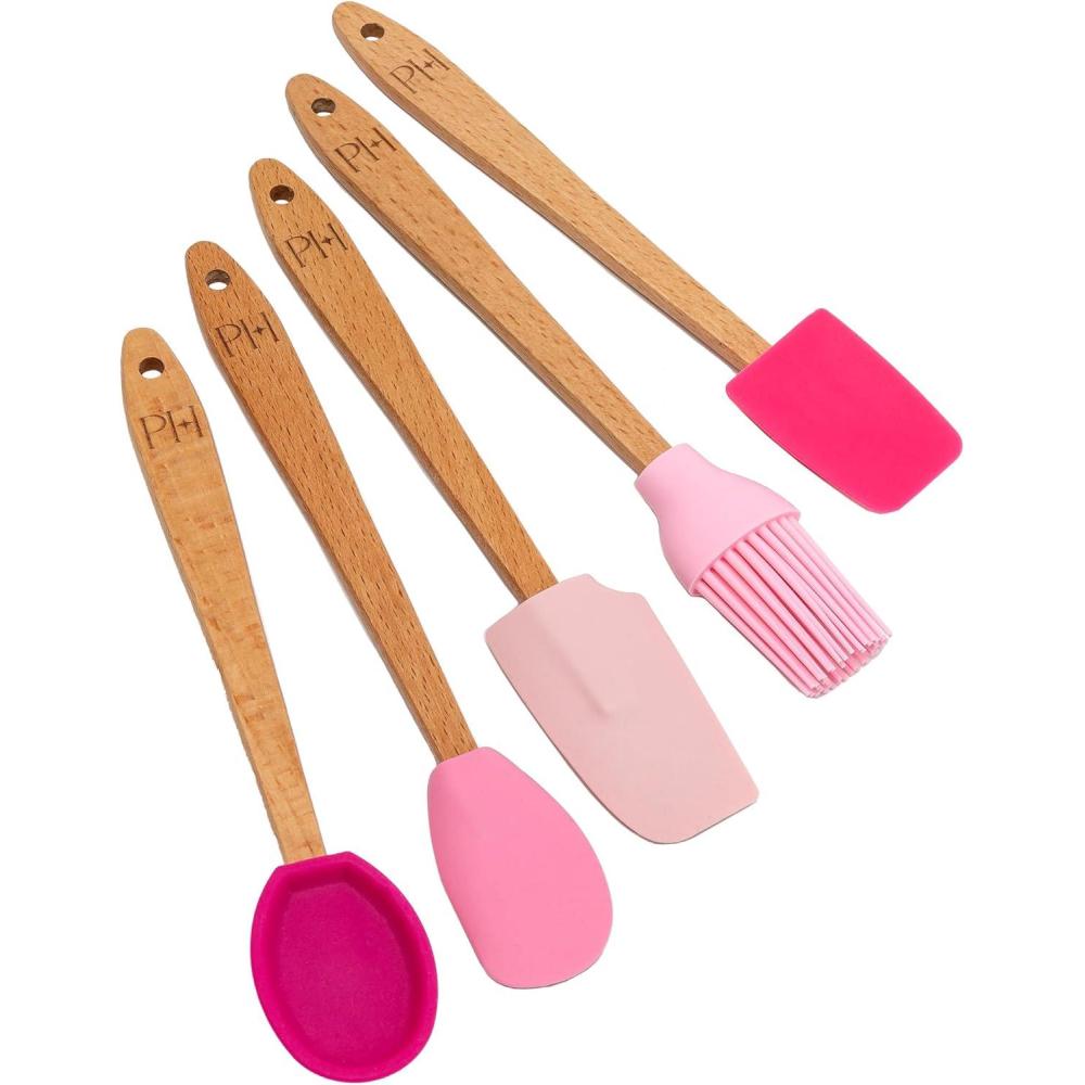 Paris Hilton 5-Piece Mini Silicone Spatula Set, Heat Resistant Kitchen Utensils, Pink