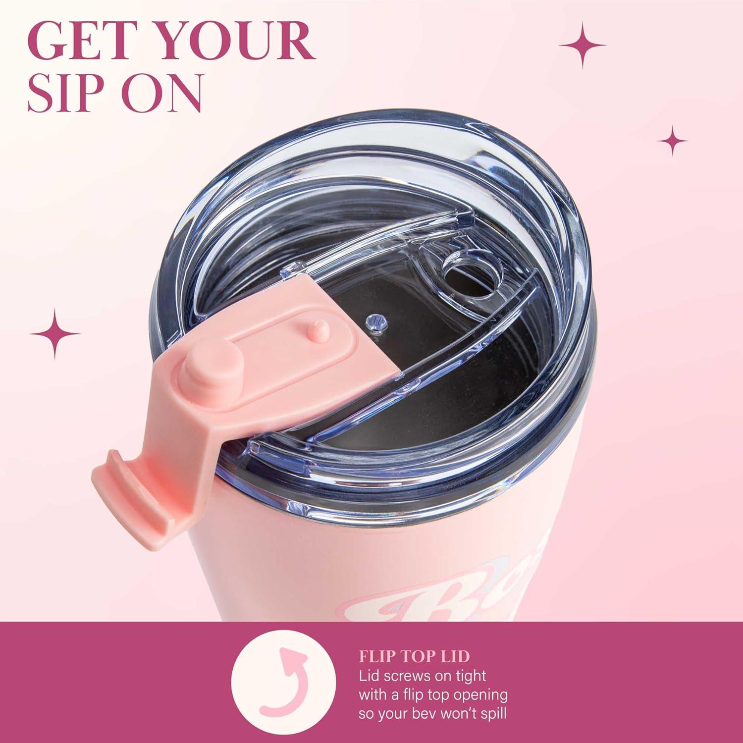 Paris Hilton Boss Babe Tumbler, Insulated Water Bottle with Leak-Proof, Flip-Top Lid, Stainless Steel Travel Cup Keeps Drinks Cold-24 hours, Hot-8 hours, 20-Ounce, Pink Iridescent(20 Ounces (Pack of 4))
