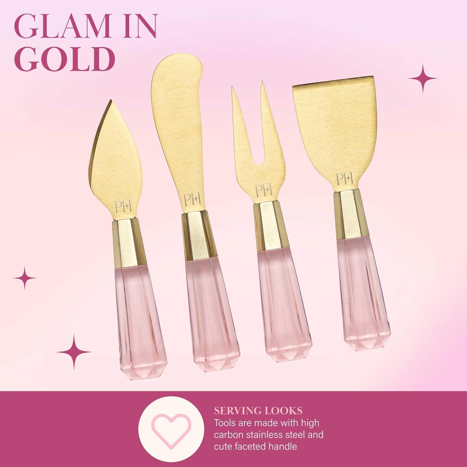Serve up sliving snacks with the Paris Hilton 7-piece Magnetic Charcuterie Board Set. This serving set is all about style, versatility and presentation. It includes three coordinating bamboo boards in varying sizes that magnetically connect for customizable serving options. Combine all 3 boards, or separate into a square and circle, or keep all three pieces separate. Create the perfect presentation for any occasion, whether it's a cozy night in for two, a family gathering, or an epic party with friends. The four-piece cheese tool set with crystal-shaped handles and titanium-coated stainless steel blades includes a spade knife, cheese spreader, cheese fork, and chisel knife. These tools not only add a touch of glam to your food presentation but also make food prep and serving a breeze. This unique board set makes for an amazing hostess or holiday gift.