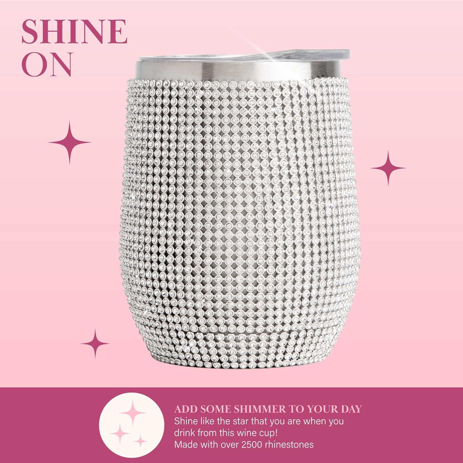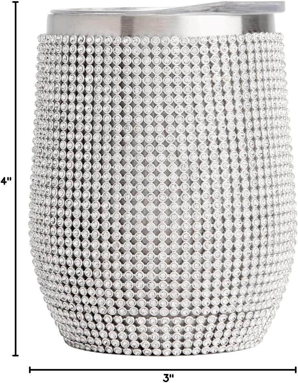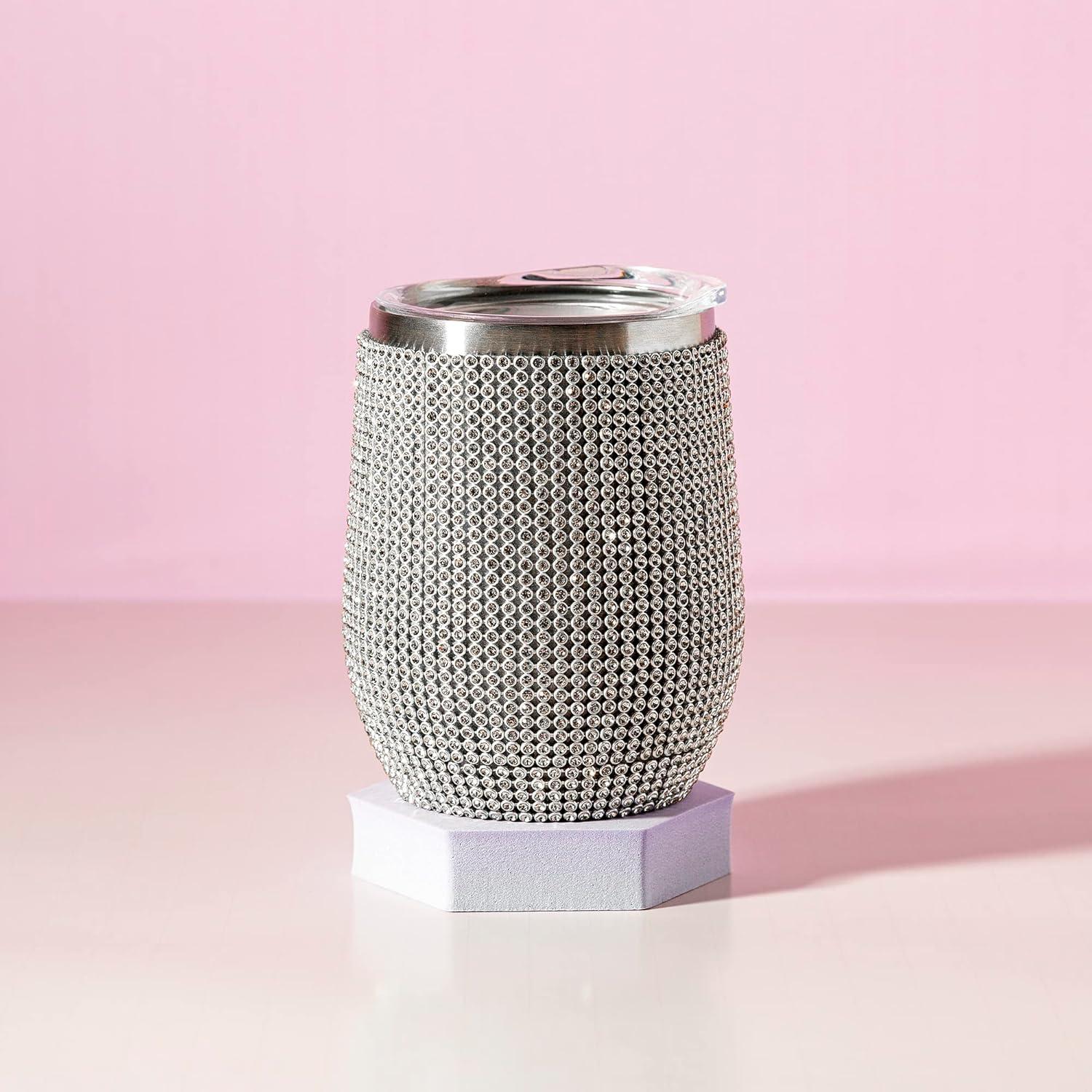 Paris Hilton Diamond Bling Wine Tumbler, Vacuum Insulated Stainless Steel with Easy Sip Lid, Bedazzled with Over 2500 Rhinestones, 12-Ounce, Silver