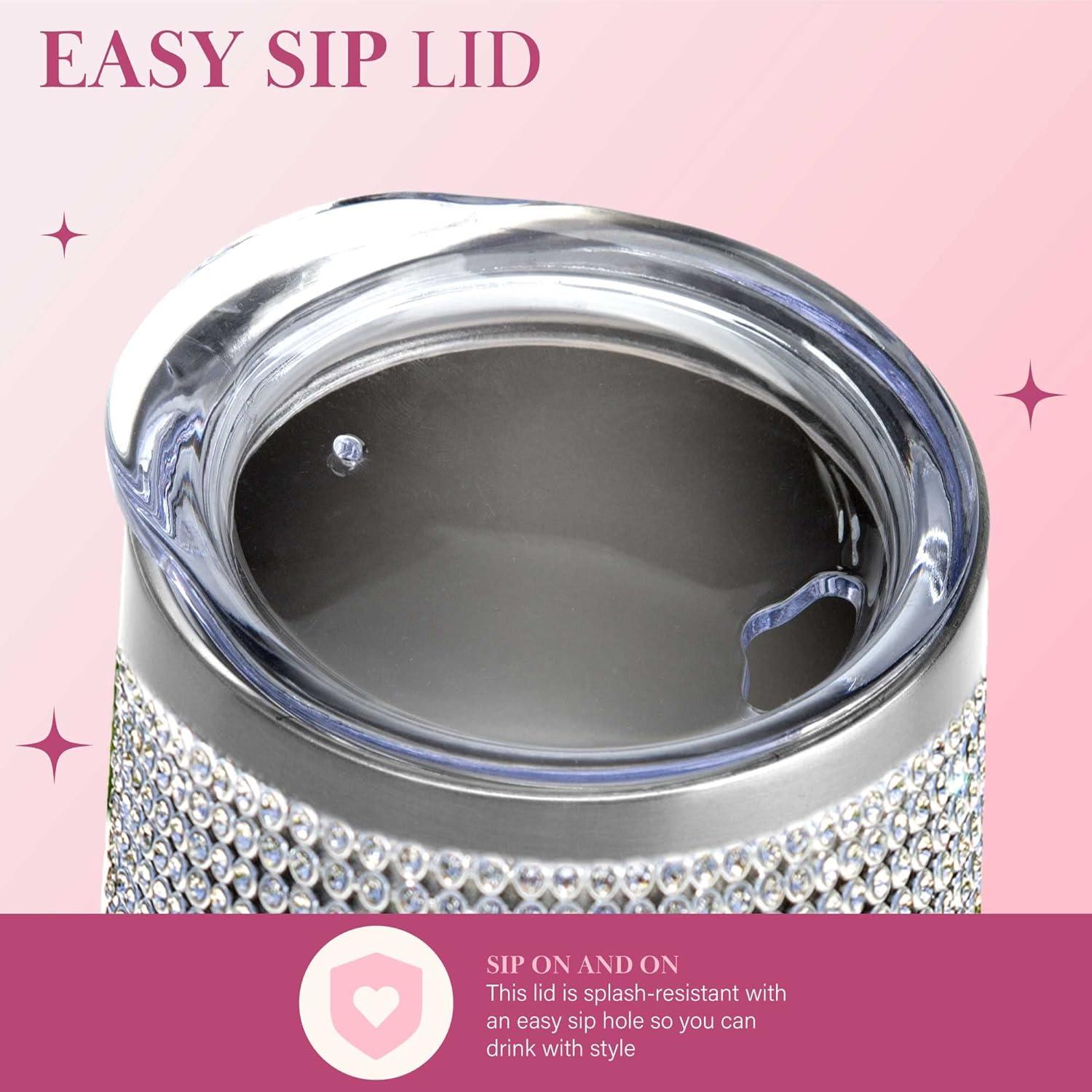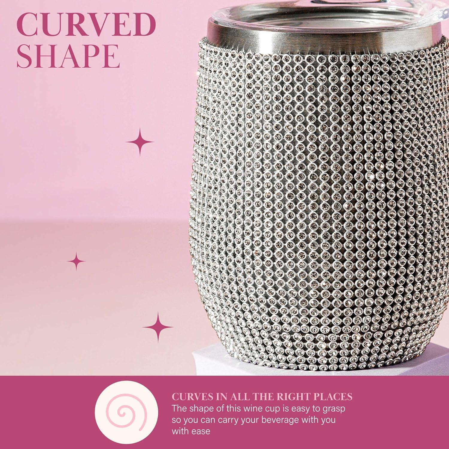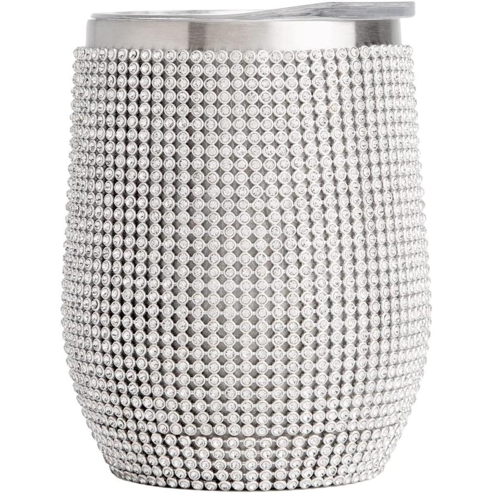 Paris Hilton Diamond Bling Wine Tumbler, Vacuum Insulated Stainless Steel with Easy Sip Lid, Bedazzled with Over 2500 Rhinestones, 12-Ounce, Silver