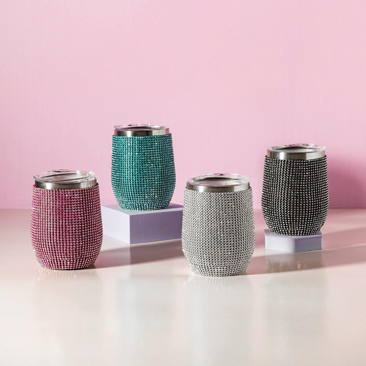 Add some shine to your day and sip like rhinestone royalty with Paris Hilton's 12-oz double wall insulated wine cup. It is bedazzled with over 2500 rhinestones and keeps your beverage of choice at just the right temperature. Hydrate in style during the day and then switch to party mode at night. This stemless wine cup is just one of the many accessories that will make any outfit iconic with a dash of sparkle for your happy hour, dinner parties or bottomless mimosa brunch with your besties. This cup pairs perfectly with the Goddess of Glam's new wine chiller set and matches her bedazzled rhinestone water bottle with carrying strap and her rhinestone tumbler with lid and straw. A must-have for the wine enthusiast in your life. Makes an excellent gift for a birthday, wedding, or housewarming party, and holiday or Christmas gifts. Check out all Paris Hilton offers to make your home and kitchen more glamorous, so you too can be a #bossbabe.