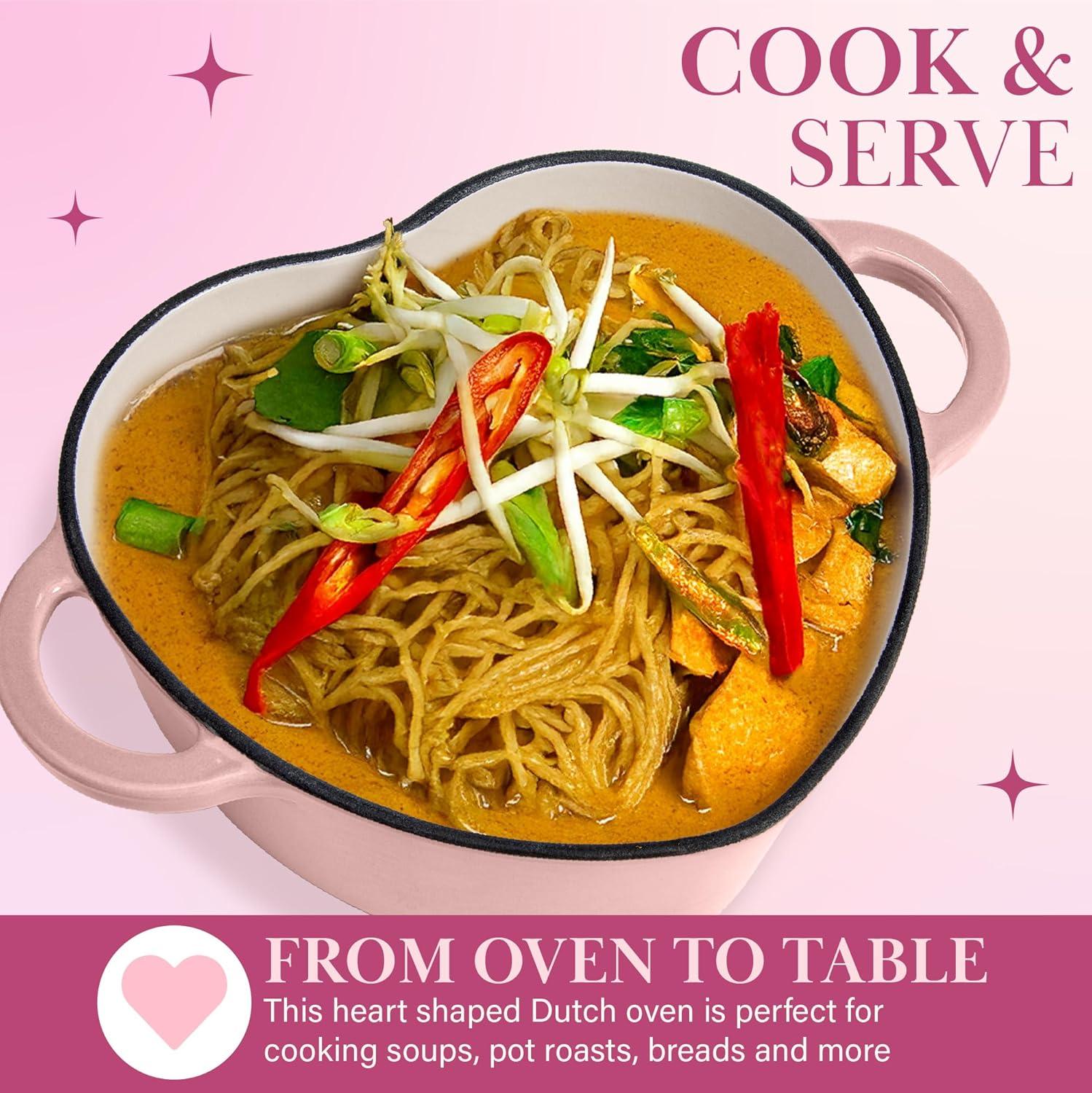 Paris Hilton Enameled Cast Iron Dutch Oven Heart-Shaped Pot with Lid, Dual Handles, Works on All Stovetops, Oven Safe to 500°F, 4-Quart, Cream(Pink)