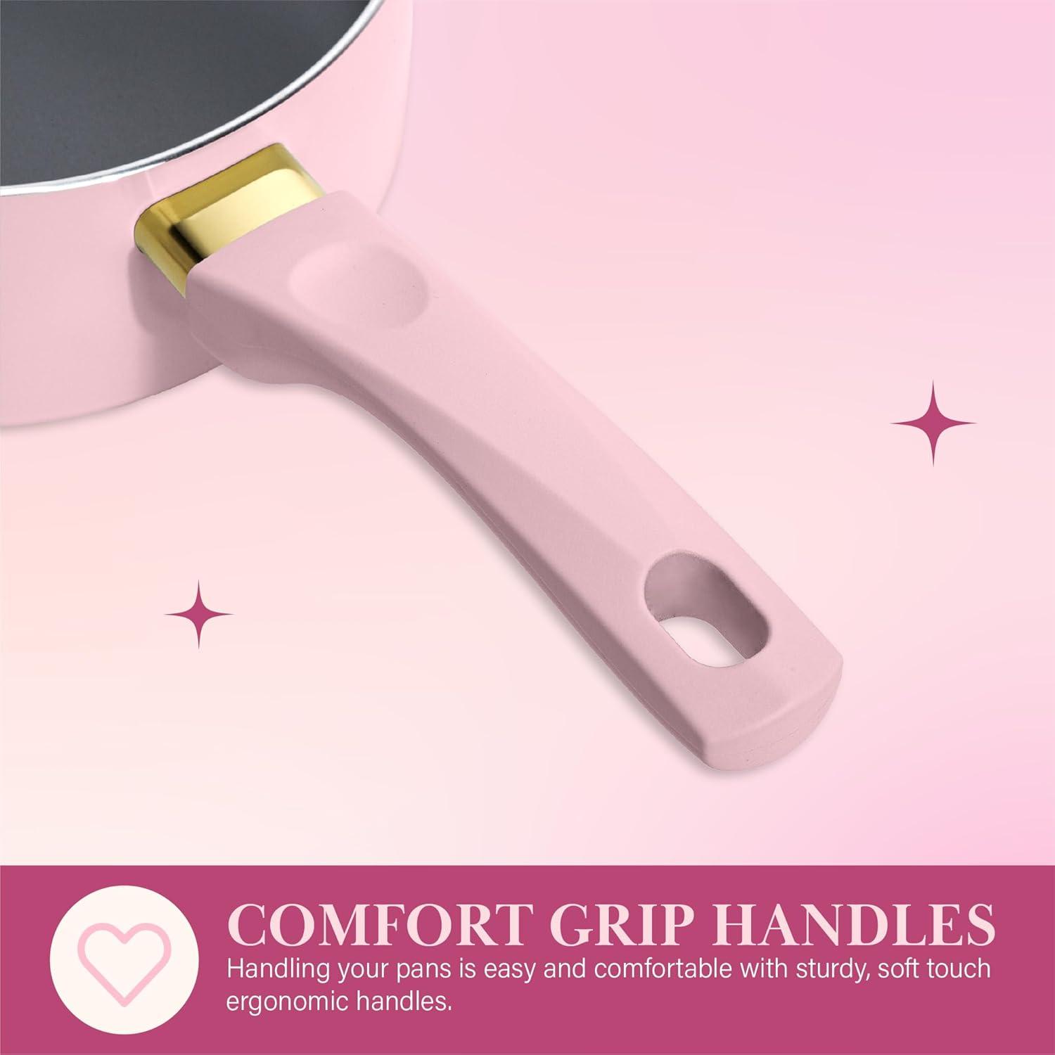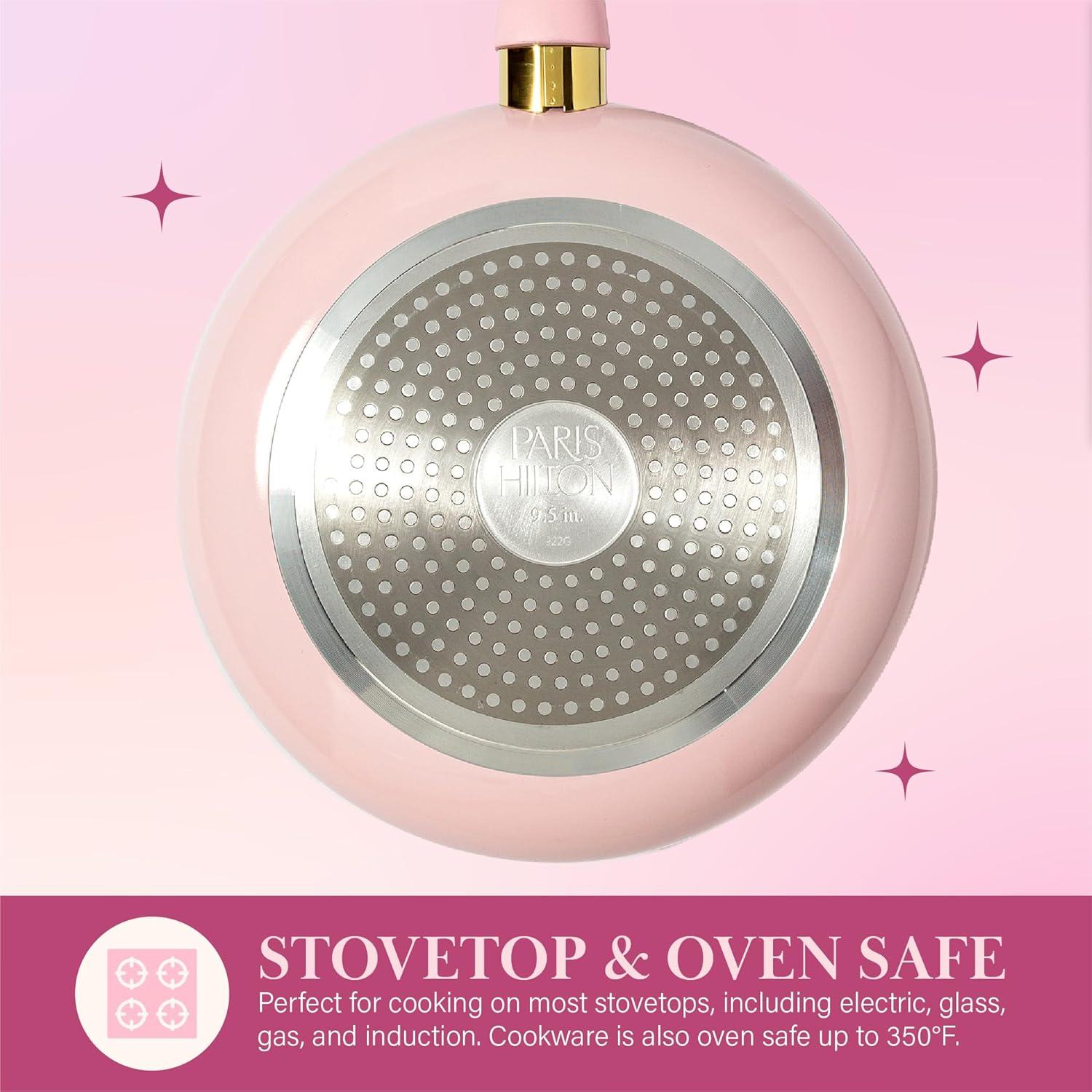 Paris Hilton Epic Nonstick Pots and Pans Set, Multi-layer Nonstick Coating, Tempered Glass Lids, Soft Touch, Stay Cool Handles, Made without PFOA, Dishwasher Safe Cookware Set, 12-Piece, Aqua(Pink)