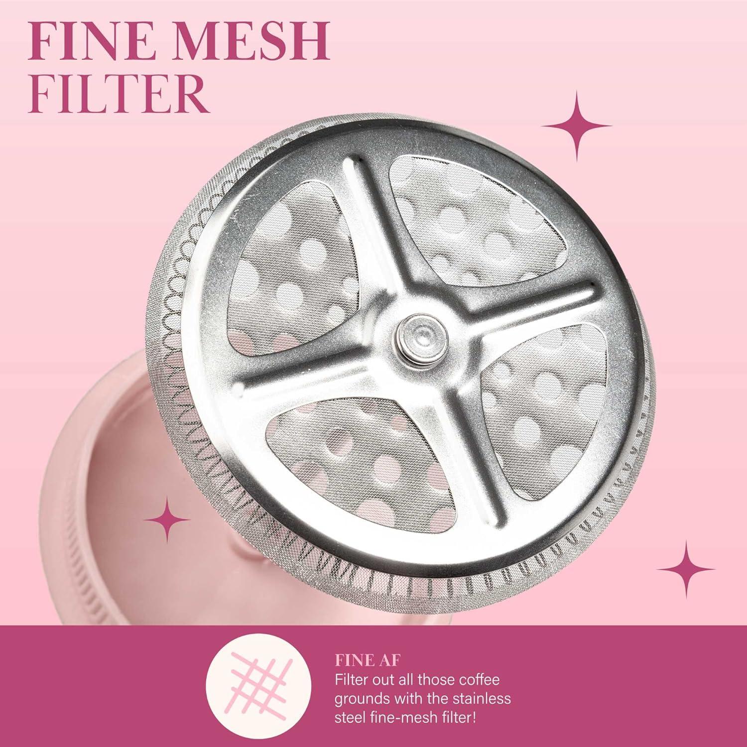 Before Sliving your life, caffeinate in style with Paris Hilton's French press coffee maker and heart shaped scoop set. This beautiful pink coffee maker features a stay cool handle and temperature safe glass encased in a golden stainless steel frame with heart accents that matches any pink kitchen decor and looks gorgeous on any counter top. A fine mesh reusable stainless steel filter will help to contain loose coffee grounds. Make your morning epic with just a few simple steps: 1. Add course ground coffee or loose leaf tea with heart-shaped measuring teaspoon. 2. Add hot water (check out Paris's color changing tea kettle). 3. Let coffee or tea brew for about 4 minutes then gently press the plunger down. 4. Serve and enjoy. The non-drip spout ensures a clean pour over your coffee cup, teacup or mug. Now, the only tea you will spill is at brunch with the besties. You can add a little sparkle to your glamping trip, music festival or brunch. A must-have for the coffee lover or loose leaf tea lover in your life. Makes an excellent gift for a birthday, wedding or housewarming party. Check out all Paris Hilton offers to make your home and kitchen more glamorous, so you too can be a #bossbabe.