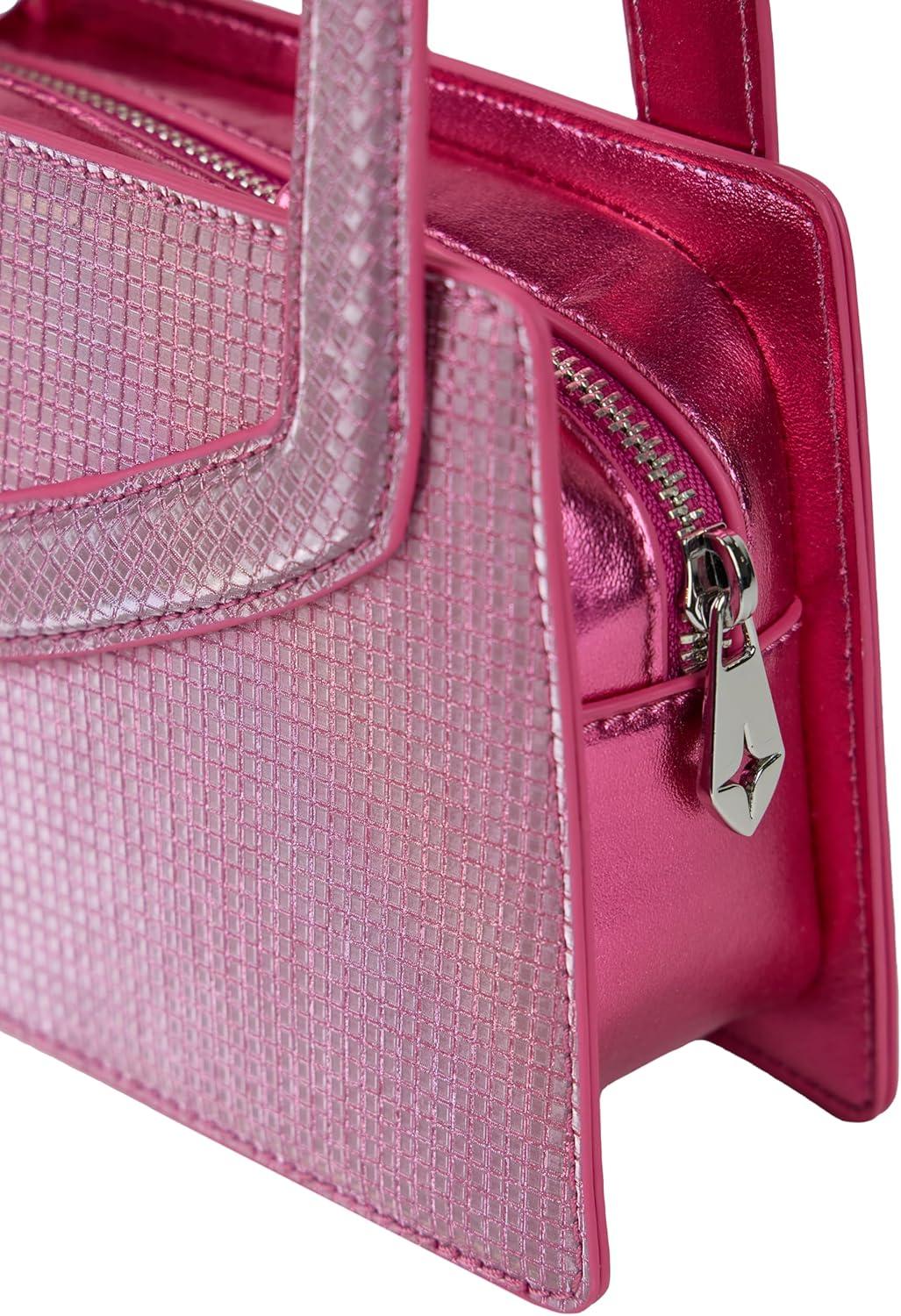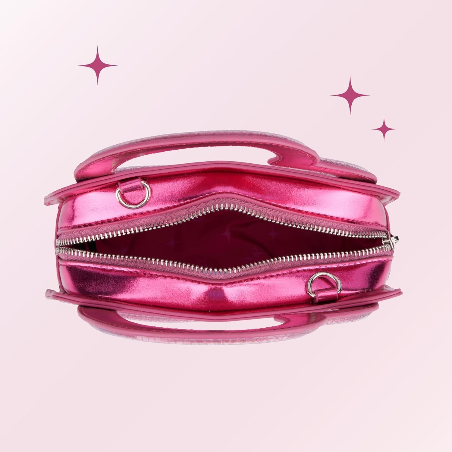 Shine on with this iconic iridescent handbag by Paris Hilton. Made with super shiny vegan leather, this mini bag is both glam and functional. Easily fit the essentials – phone, keys, and wallet. Sliv your best life with extraordinary heart-shaped cutout handles and a skinny detachable crossbody strap for a hands-free look.