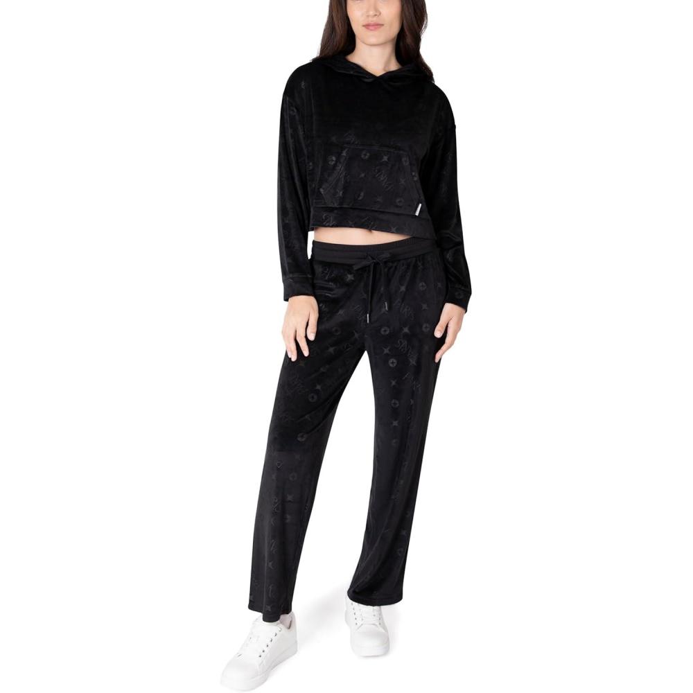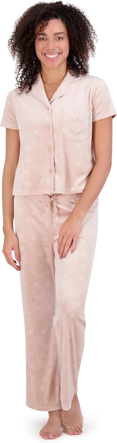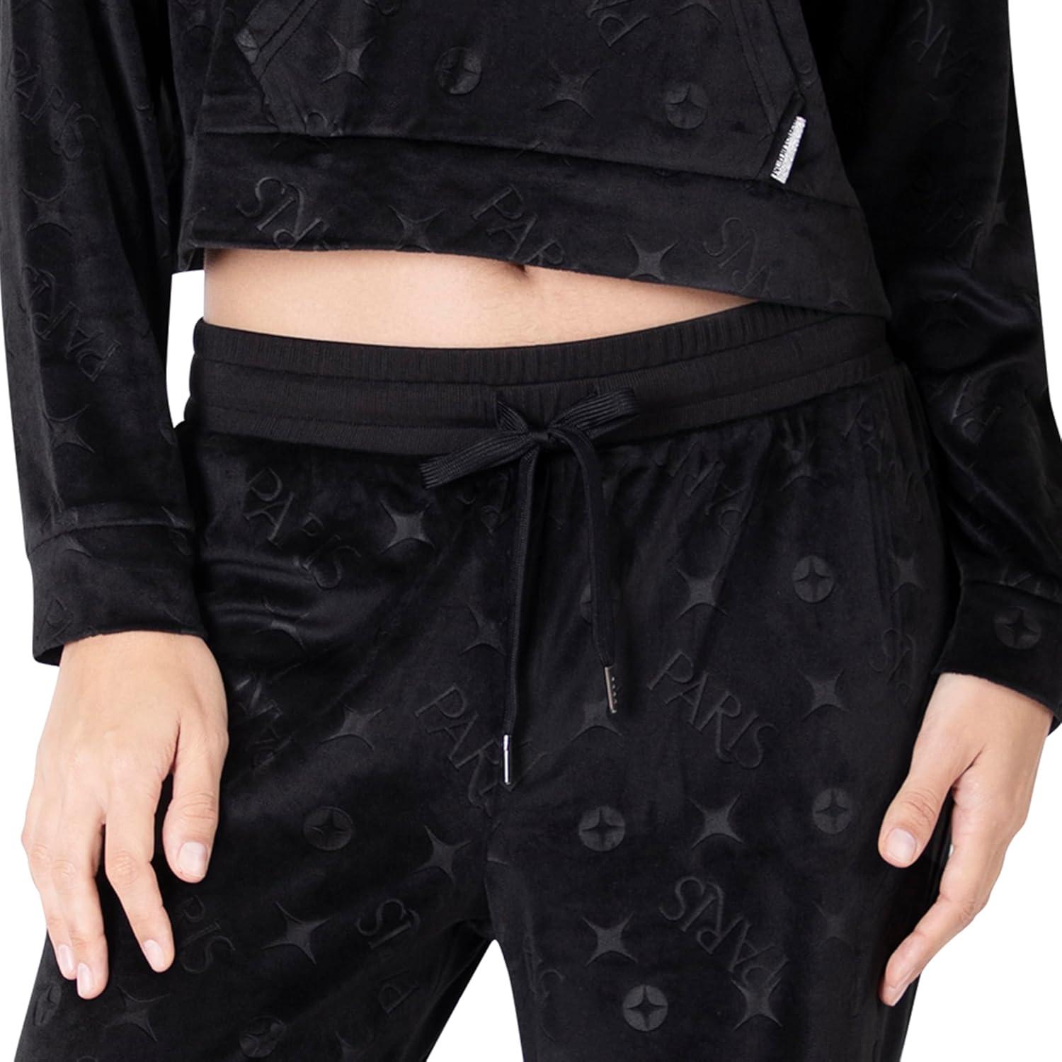 Paris Hilton Tracksuit Women’s Lounge Set Sweatsuit Embellished Velour Pullover Top and Pants Matching Set 2 Pieces(Black)
