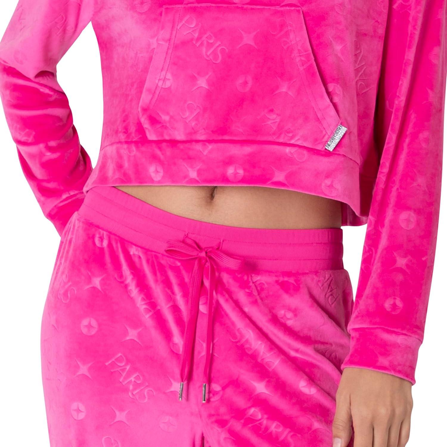 Paris Hilton Tracksuit Women’s Lounge Set Sweatsuit Embellished Velour Pullover Top and Pants Matching Set 2 Pieces(Hot Pink)