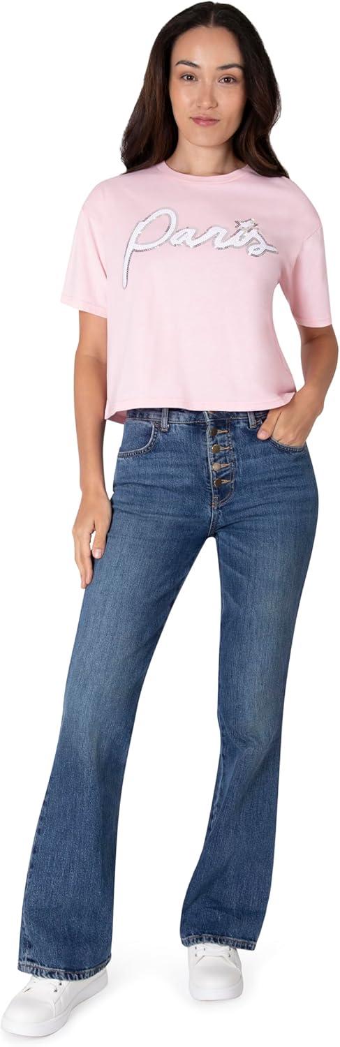 Paris Hilton Women’s Fashion T-Shirt Embellished Graphics Short Sleeve Crew Neck Tops(Paris Pink)