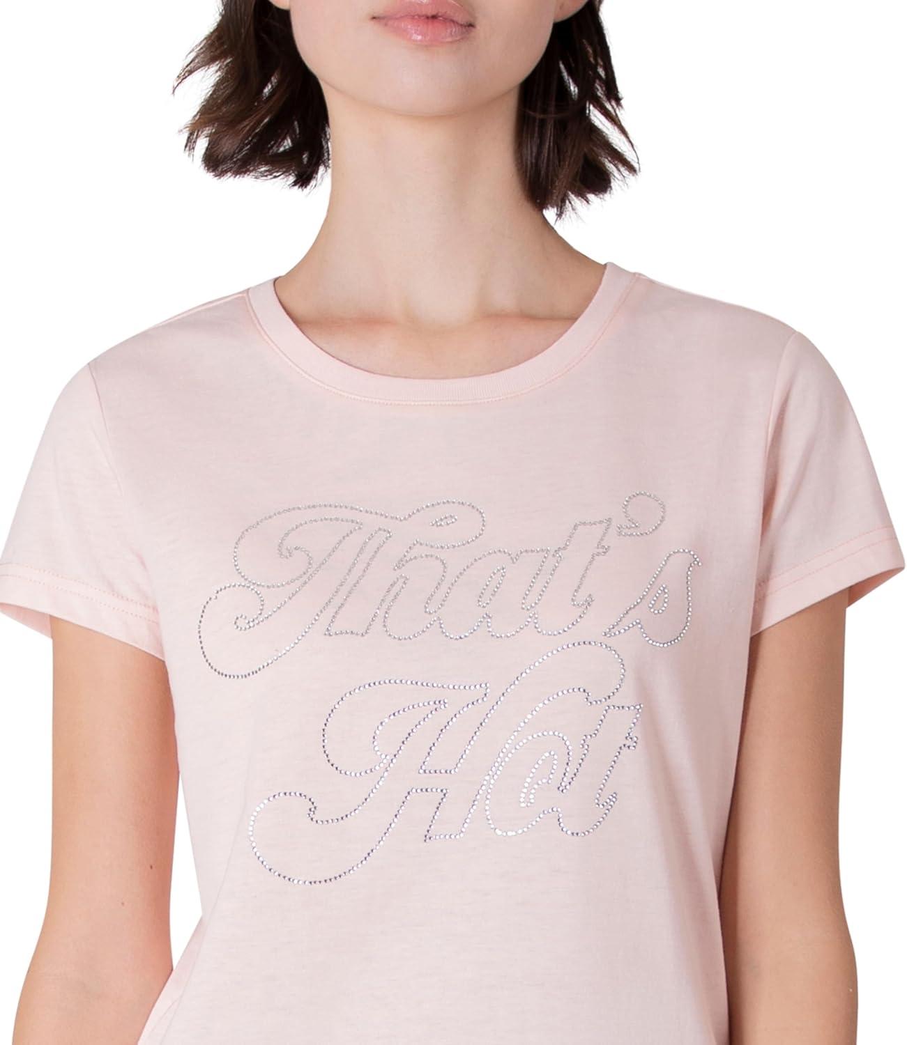 Paris Hilton Women’s Fashion T-Shirt Embellished Graphics Short Sleeve Crew Neck Tops(That’s Hot Pink)