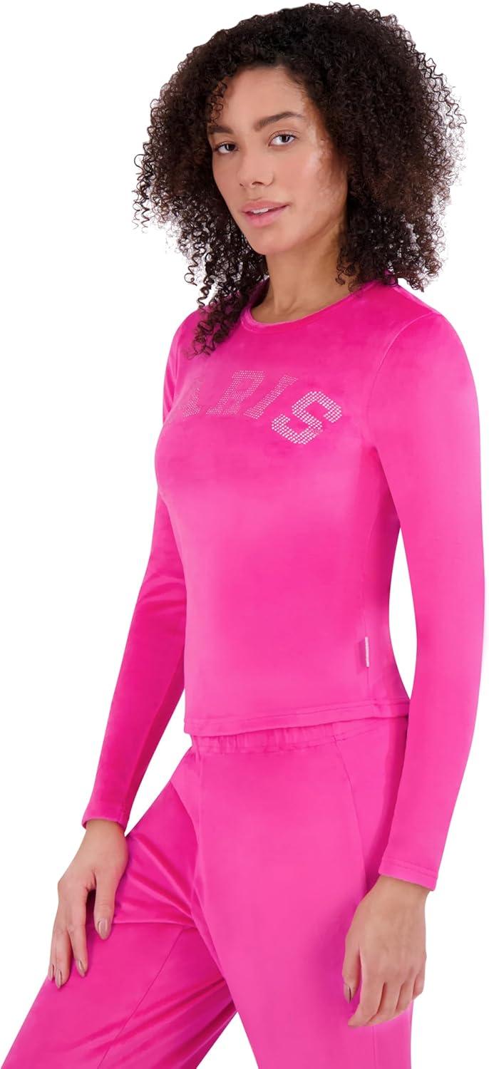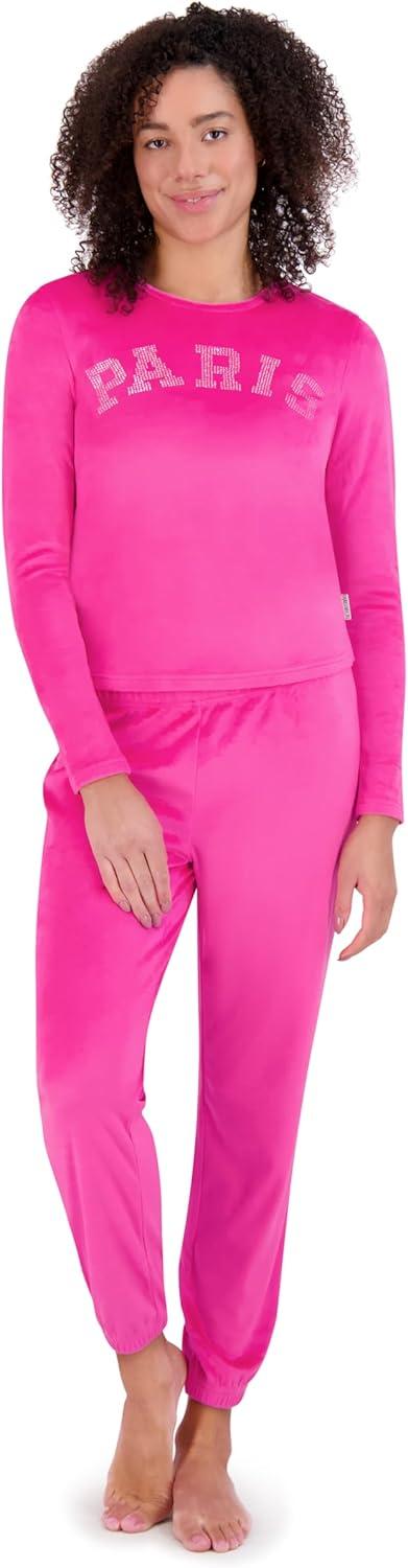 Paris Hilton Women’s Long Sleeve Top and Pants Embellished Pajama Set(Hot Pink Velour)