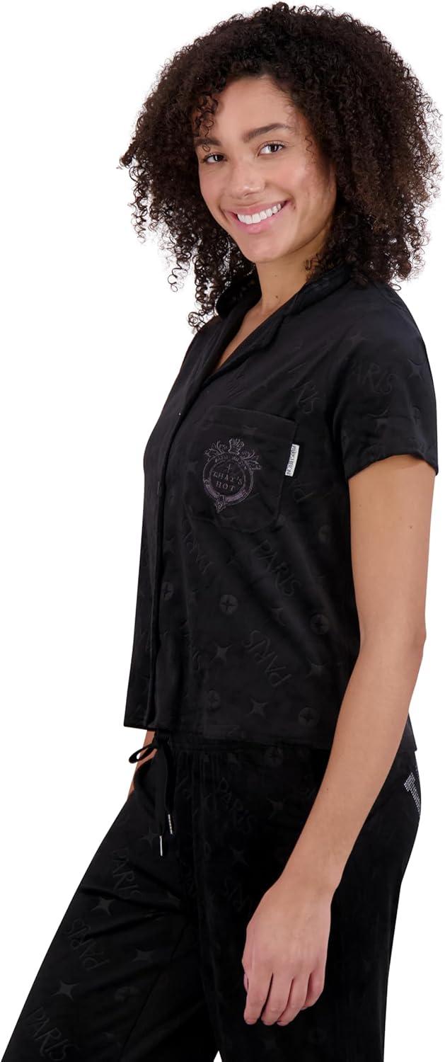 Paris Hilton Women’s Top and Pants Comfy 2 piece Pajama Sets(Black Iconic)