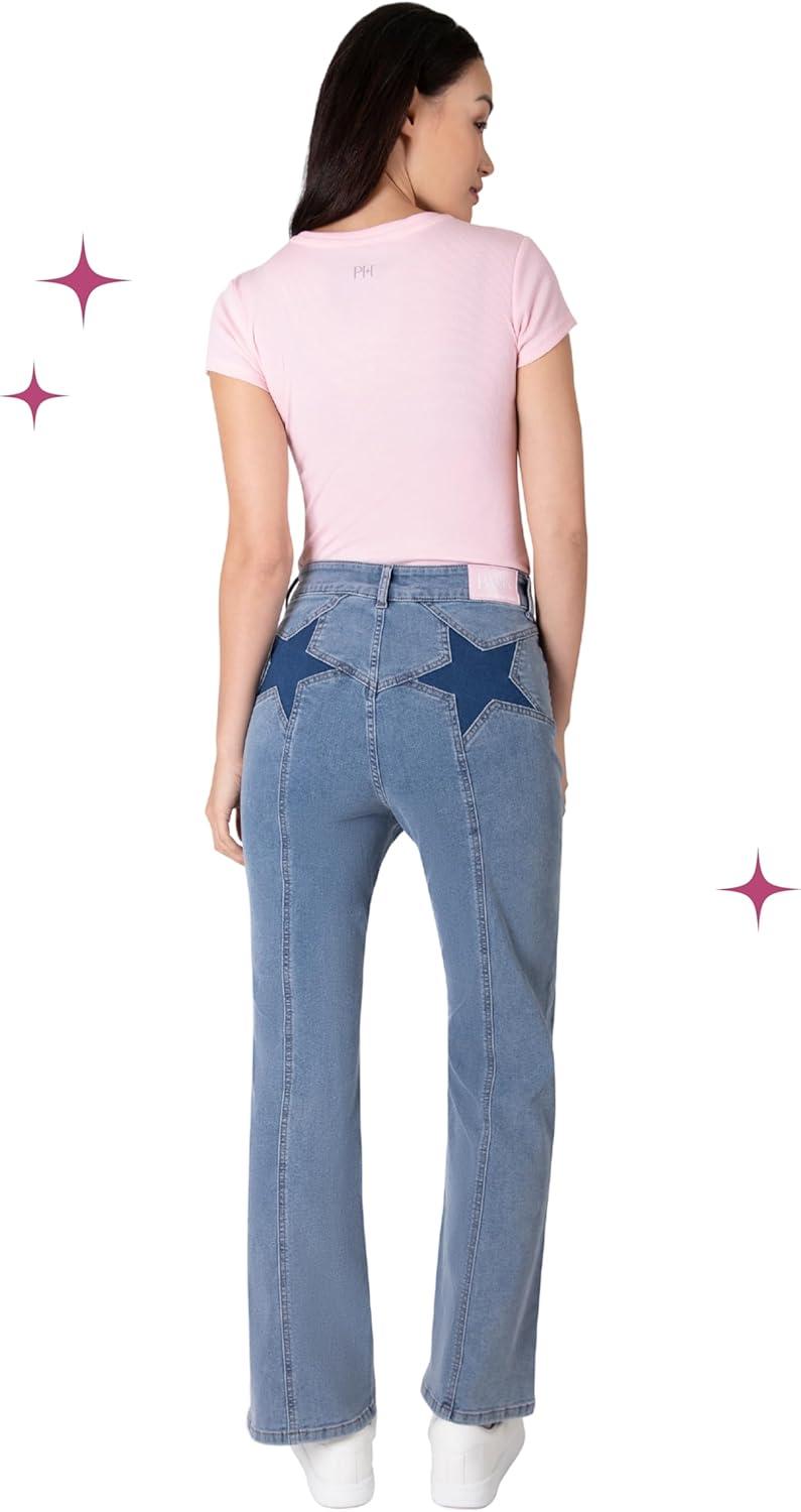 Paris Hilton Women’s Wide Leg Flare High Rise Stretch Denim Jeans